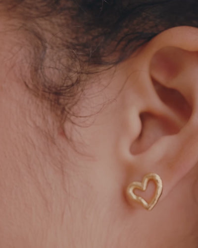 Unsere Liora Ohrringe in offener Herzform schmiegen sich perfekt an das Ohrläppchen, mit ihren dicken Linien und ihrem minimalistischen Design.