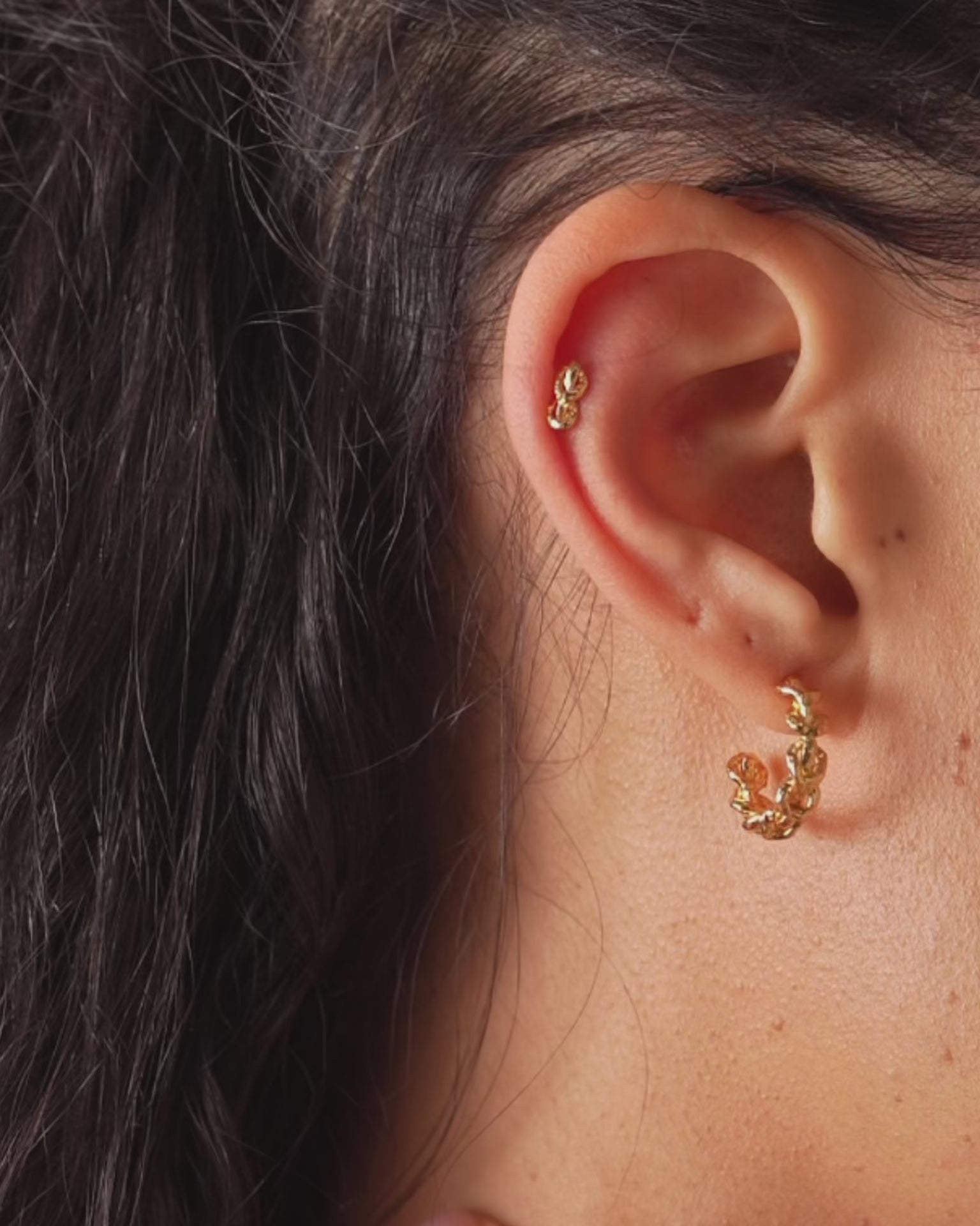Ein gehämmerter Stud Piercing in Knotenform mit flachem Verschluss. Zwei gedrehte Stränge verschlingen sich zu einem Seemannsknoten, inspiriert vom antiken Herkulesknoten. Einzeln verkauft.