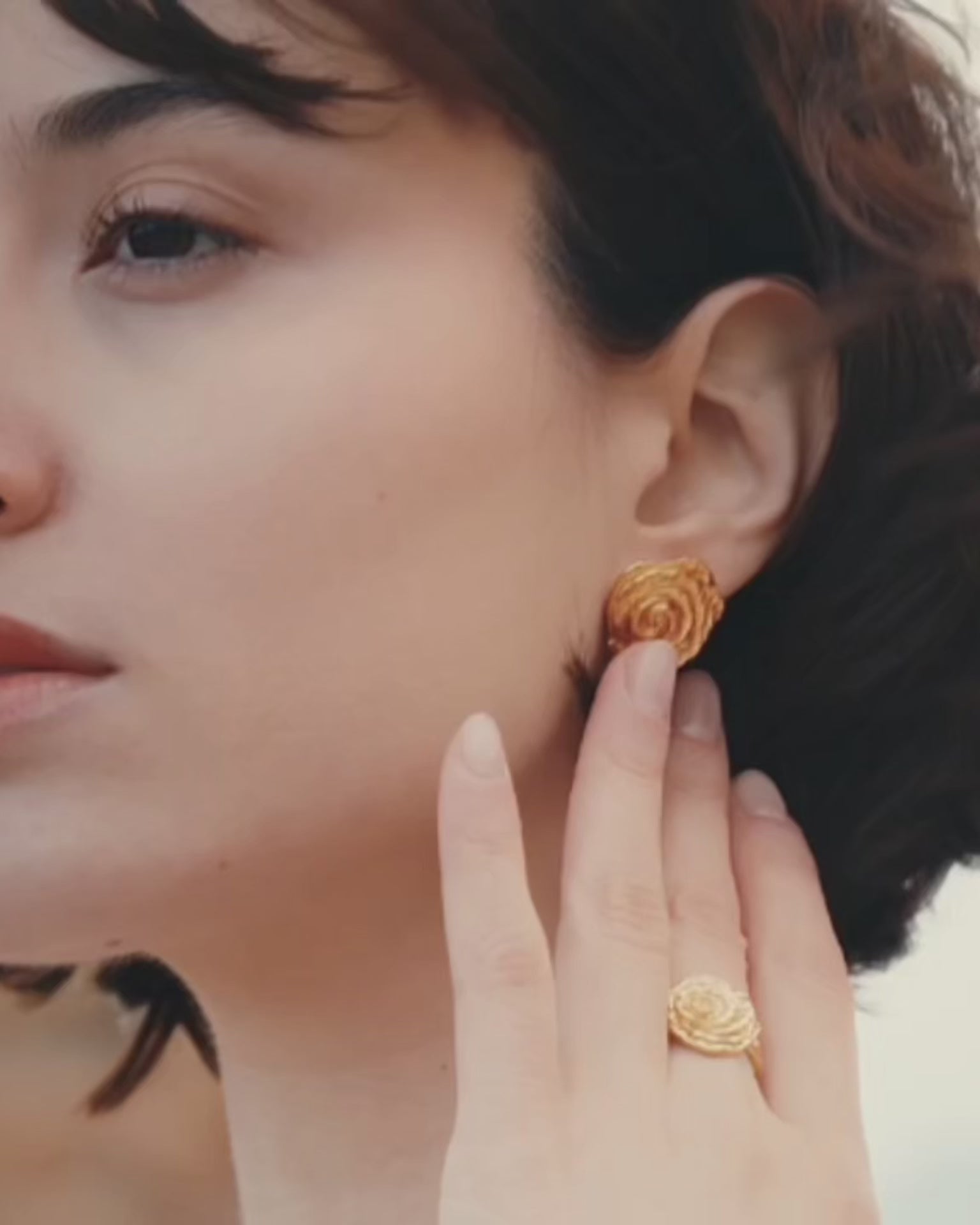 Die Blüten der Rosie Ohrringe sind majestätische Rosen mit gehämmerten und voluminösen Blütenblättern.