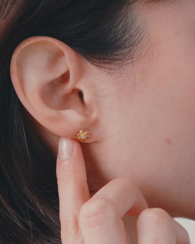 Les studs Aleli représentent une petite fleur en éclosion, ornée d’une pierre blanche en son cœur.