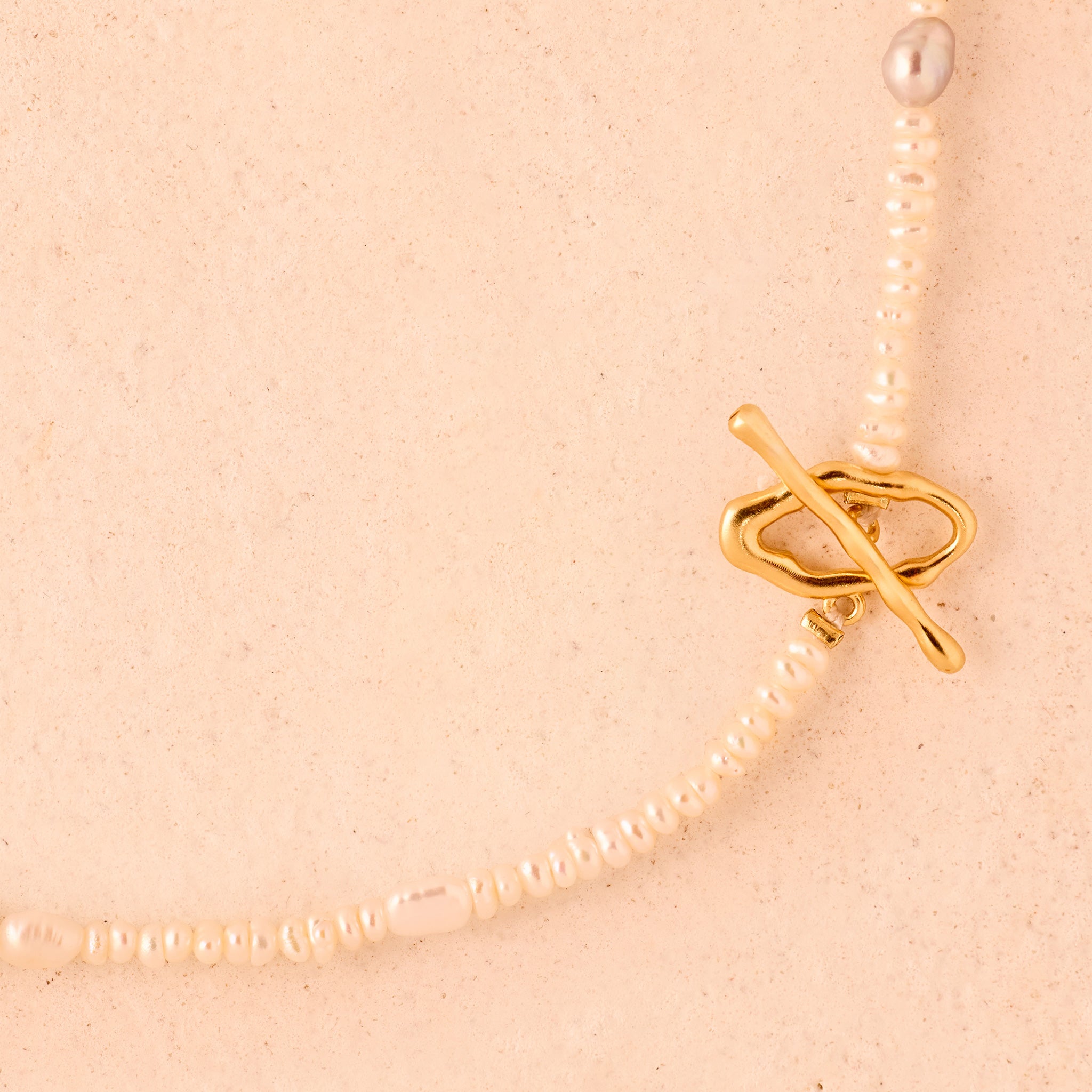 Orné de perles d’eau douce blanches et grises, ce choker fait main sublime les peaux dorées par le soleil. Un bijou délicat, comme un rappel de chérir les petites choses précieuses de la vie.