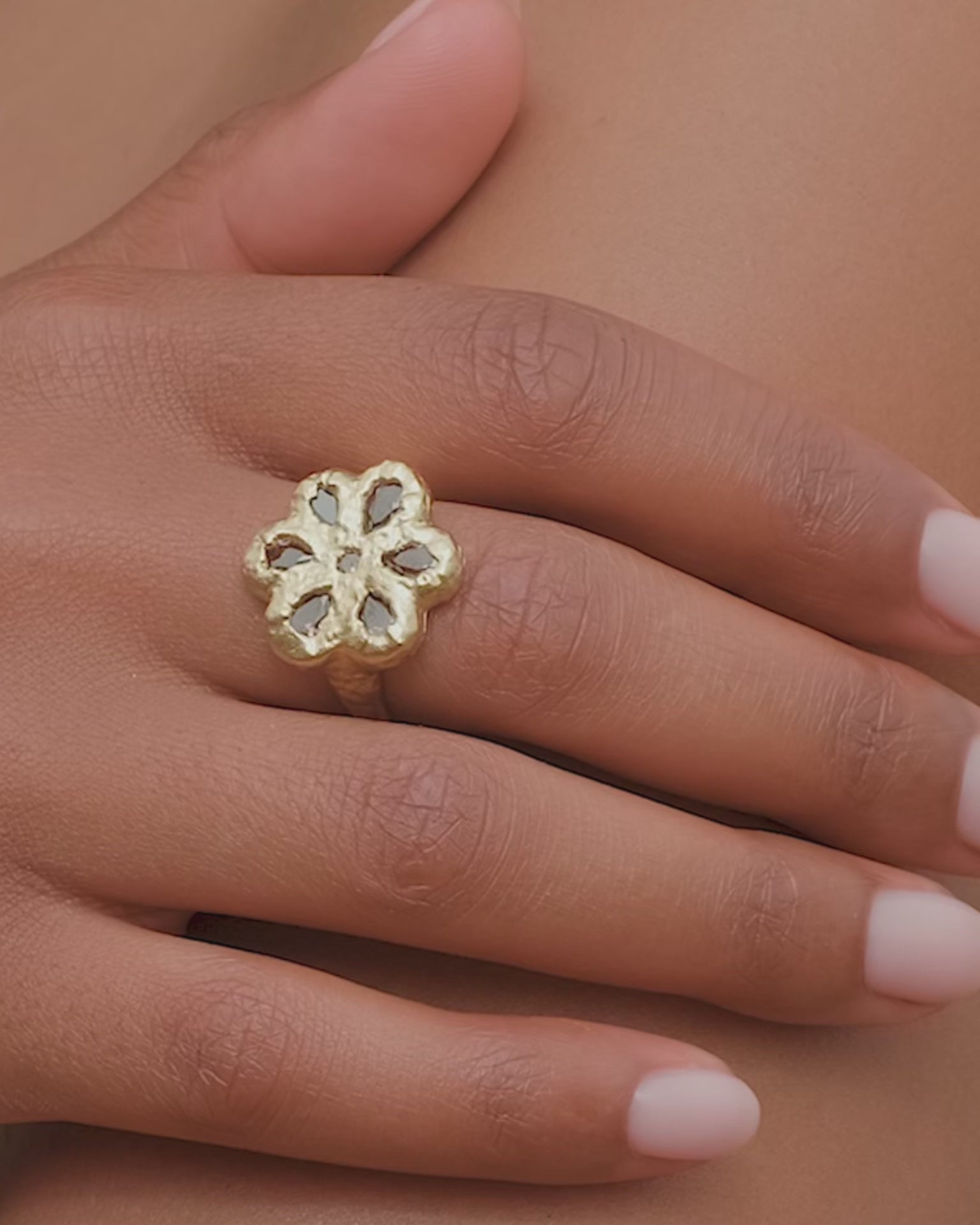 Celebrazione delle forze della primavera e dell'estate, Rita è la nostra interpretazione di un fiore in piena fioritura. La sua pietra Rosewood rosso intenso vi porterà equilibrio, coraggio e compassione.