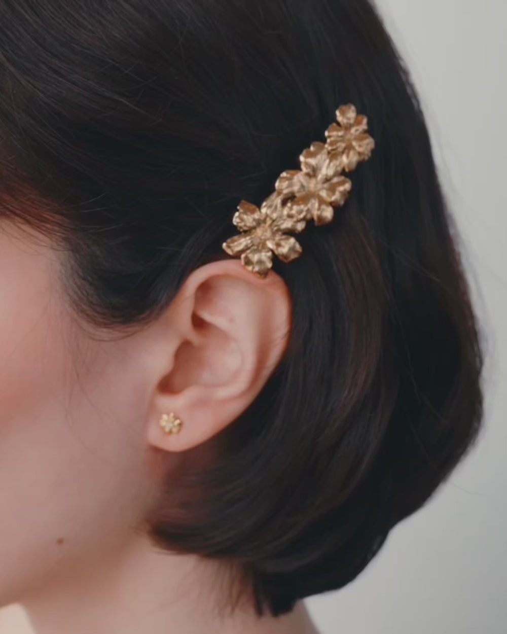 Il fermaglio Rosaria è decorato con tre piccoli fiori delicati.